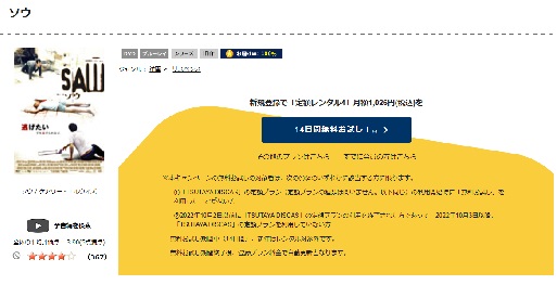そして、映画「ソウ」はツタヤディスカスで配信しているので、無料でDVDレンタルが可能です。