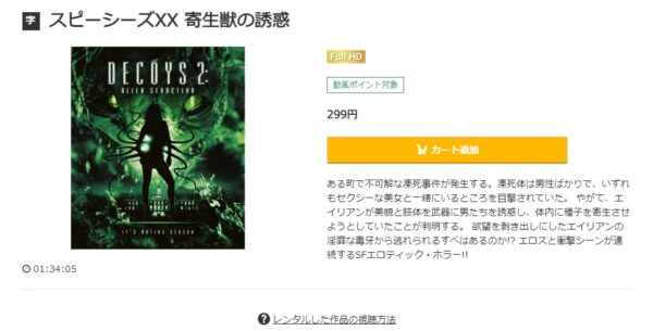 映画「スピーシーズXX 寄生獣の誘惑」は299円でレンタル配信してるので、フルで視聴できます。