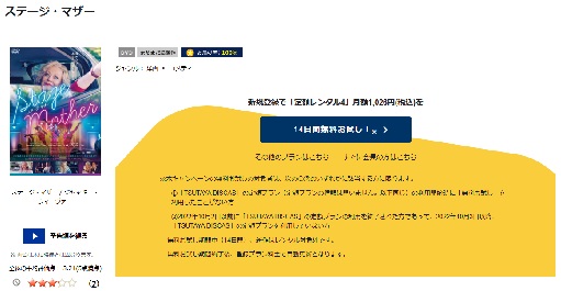 『TSUTAYA DISCAS』は14日間のお試し期間が初回特典で利用できるので「ステージ・マザー」の動画をフルで無料視聴できますよ。