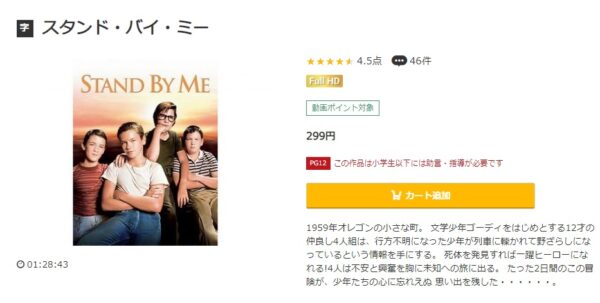 映画「スタンド・バイ・ミー」は299円でレンタル配信してるので、フルで視聴できます。