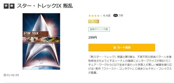 music.jpは、初回登録で1,600Ptが貰えるので「スター・トレック IX 叛乱」の映画を無料で見ることができます。