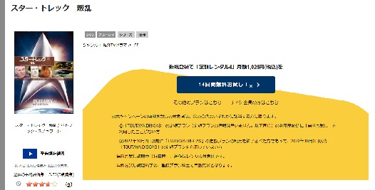 そして、映画「スター・トレック IX 叛乱」はツタヤディスカスで配信しているので、無料でDVDレンタルが可能です。