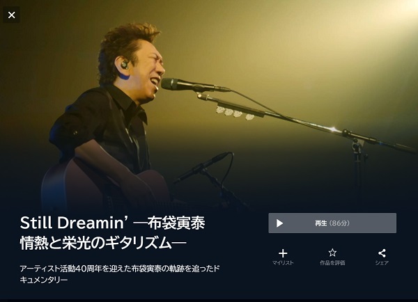 - 映画「Still Dreamin’ —布袋寅泰 情熱と栄光のギタリズムー」がフルで無料視聴。