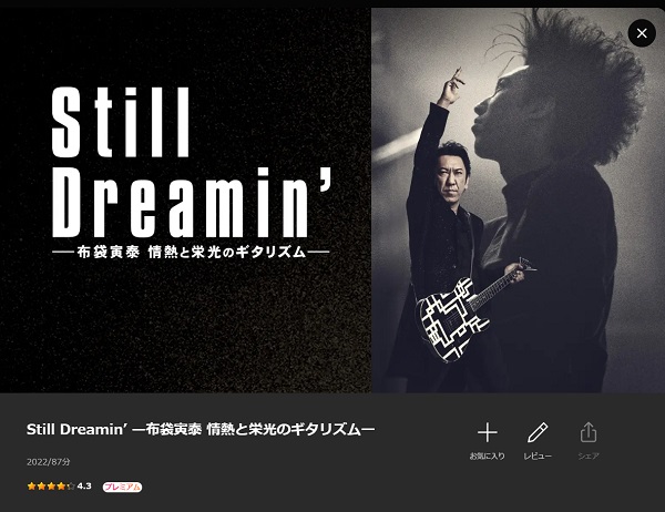 映画「Still Dreamin’ —布袋寅泰 情熱と栄光のギタリズムー」をU-NEXTで視聴するのに399