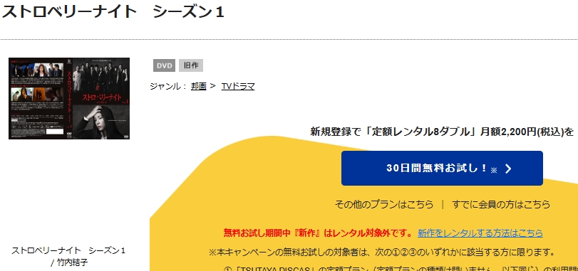 TSUTAYA DISCASならお試し期間が30日間あるので、「ストロベリーナイト」シリーズを無料で視聴可能です。