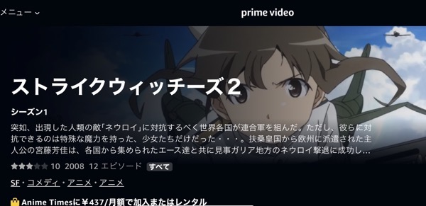Amazonプライムはアニメ「ストライクウィッチーズ2(2期)」は無料で視聴できませんが、関連動画やシリーズ作品には見放題で配信されているものもあります。