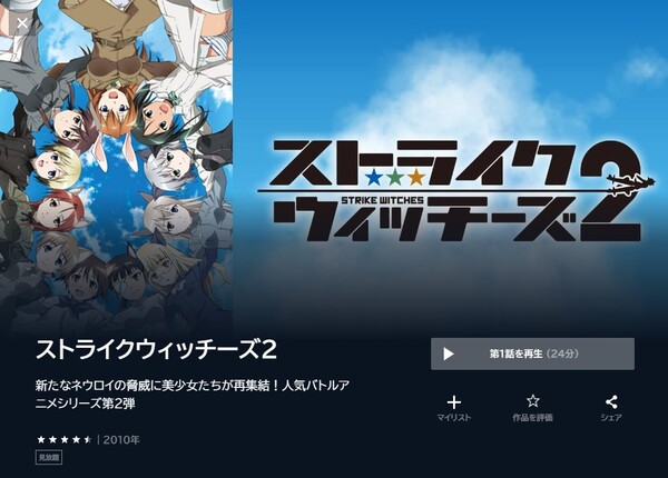 U-NEXTでアニメ「ストライクウィッチーズ2(2期)」の動画を無料トライアルで全話視聴