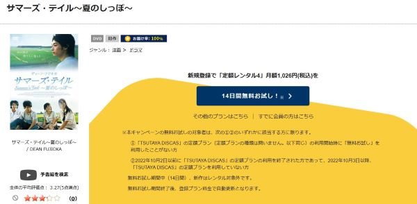そして、映画「サマーズ・テイル〜夏のしっぽ〜」はツタヤディスカスで配信しているので、無料でDVDレンタルが可能です。