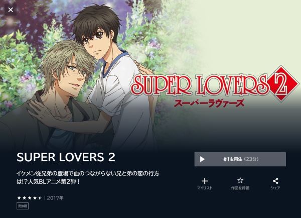 - 「SUPER LOVERS 2(2期)」の関連動画も無料で視聴できる。