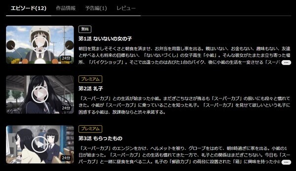 アニメ「スーパーカブ」を動画配信サイトで全話無料で見る