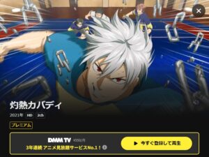 アニメ「灼熱カバディ」は、DMM TVで見放題配信されており、お試し期間中に全話視聴することができます。