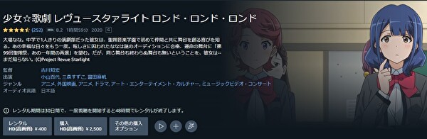 Amazonプライムビデオでも映画「少女☆歌劇 レヴュースタァライト ロンド・ロンド・ロンド」はフルで視聴することができます。