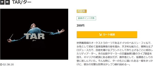 映画「TAR/ター」は399円でレンタル配信してるので、フルで視聴できます。