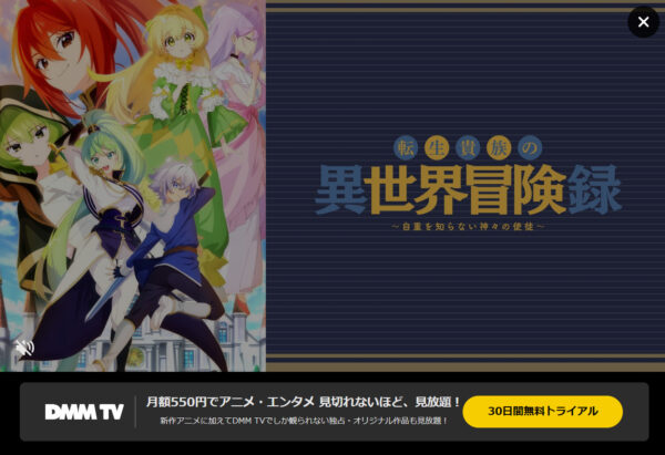 今後、Netflixでアニメ「転生貴族の異世界冒険録 ~自重を知らない神々の使徒~」の配信を待つより、DMMTVでアニメ「転生貴族の異世界冒険録 ~自重を知らない神々の使徒~」は全話配信中となっているので、お試し期間のあるDMMTVを利用することをおすすめします。
