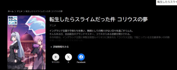 DMMTVでアニメ「転生したらスライムだった件 コリウスの夢」の動画を全話無料視聴