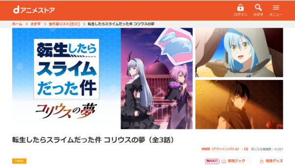 dアニメストアでアニメ「転生したらスライムだった件 コリウスの夢」の動画を全話無料視聴