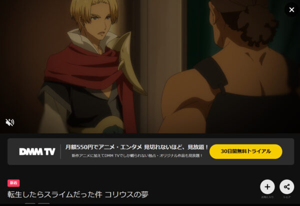 そんなアニメ「転生したらスライムだった件 コリウスの夢」を全話視聴したい場合は、DMMTVですぐに視聴ができますので、こちらもチェックしてみてくださいね。