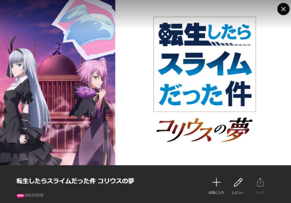アニメ「転生したらスライムだった件 コリウスの夢」が全話視聴できる動画配信サイトを調査しました。