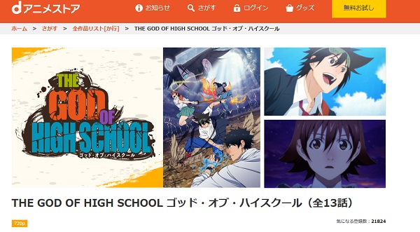 またdアニメストアは、アニメ「THE GOD OF HIGH SCHOOL ゴッド・オブ・ハイスクール」のシリーズや関連動画を全話視聴できます。