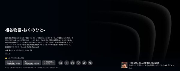 しかし、映画「祖谷物語 -おくのひと-」はレンタル作品のため、400円かかってしまい無料視聴することができません。