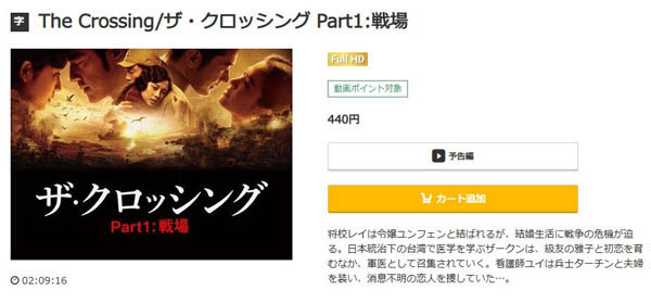映画「The Crossing ザ・クロッシングPart1:戦場」は440円でレンタル配信してるので、フルで視聴できます。
