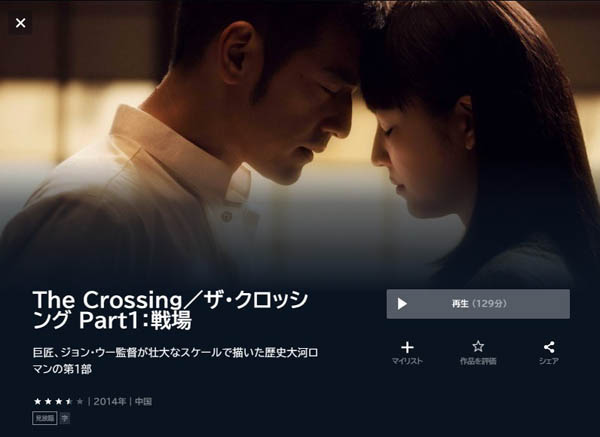 また、映画「The Crossing ザ・クロッシングPart1:戦場」のシリーズ作品の映画もフルで無料視聴が可能です。