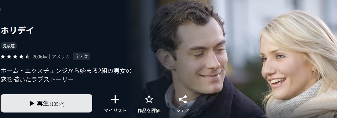 映画「ホリデイ」が配信してる動画配信サービスを調査しました。