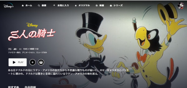 - 「三人の騎士」の他のディズニー作品も視聴可能。