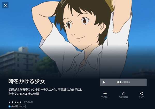 また、「時をかける少女」の映画の関連作品も見放題でフル視聴できます。