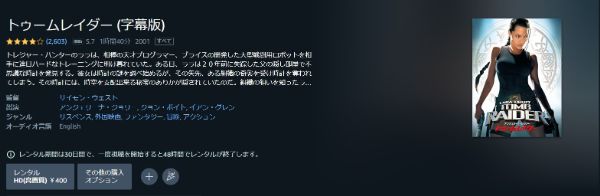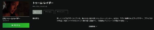 ただ、映画「トゥームレイダー」の関連作品の映画は配信しているので、見放題で視聴は可能です。