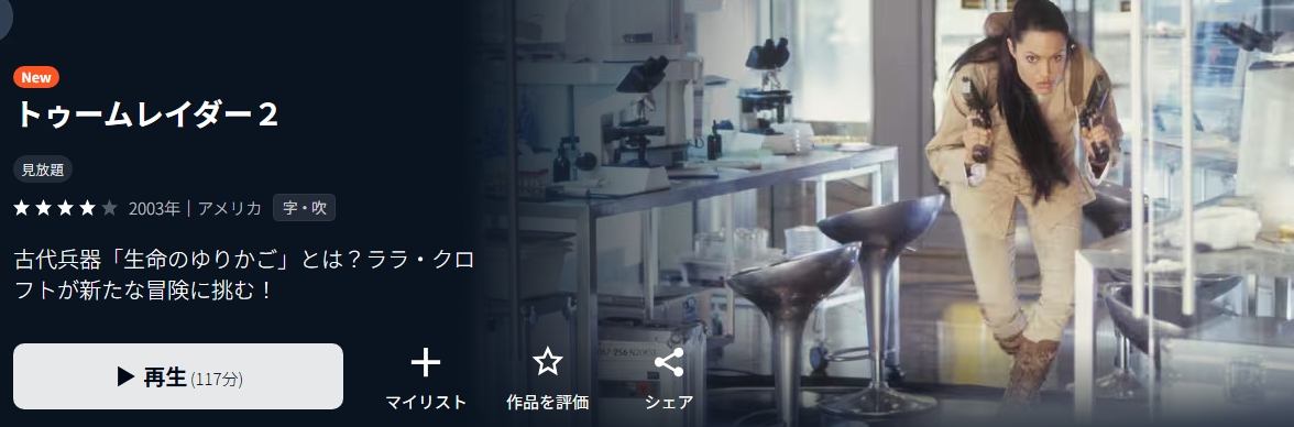 また、映画「トゥームレイダー2」の関連作品もトライアル中にフル視聴が可能です。