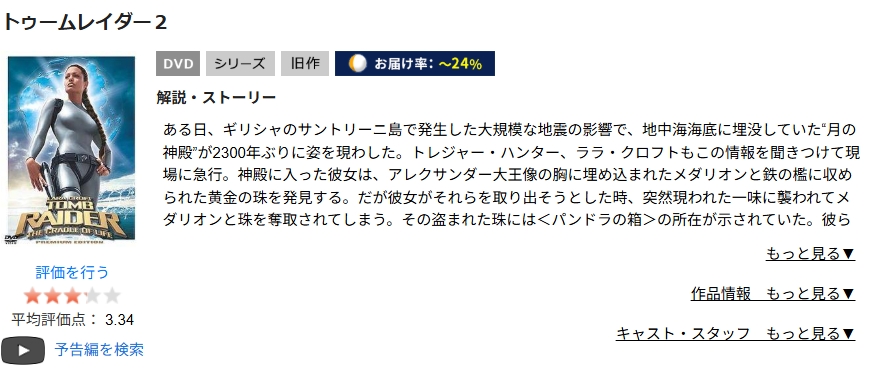 TSUTAYA DISCASで映画「トゥームレイダー2」をDVDレンタルしてフル視聴