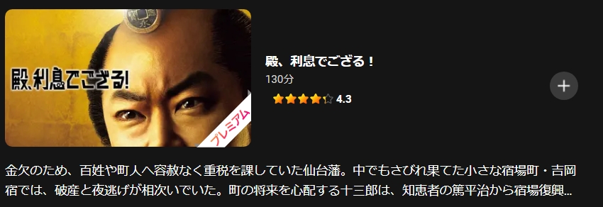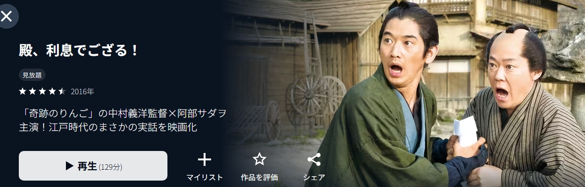 - 映画「殿、利息でござる!」がフルで視聴可能。