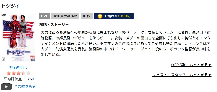 TSUTAYA DISCASで映画「トッツィー」をDVDレンタルしてフル視聴