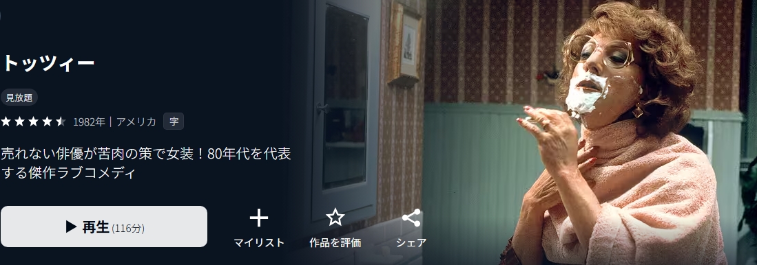 • 映画「トッツィー」がフルで視聴可能。