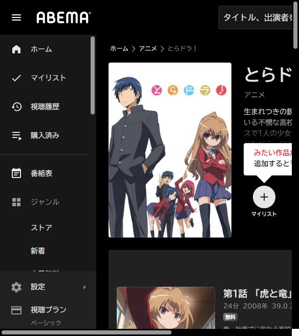 Amazonプライムはアニメ「とらドラ!」は無料で視聴できませんが、関連動画やシリーズ作品には見放題で配信されているものもあります。