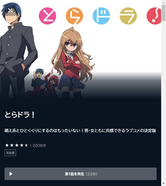 - 「とらドラ!」が全話見放題で視聴可能