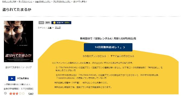 『TSUTAYA DISCAS』は14日間のお試し期間が初回特典で利用できるので「盗られてたまるか」の動画をフルで無料視聴できますよ。