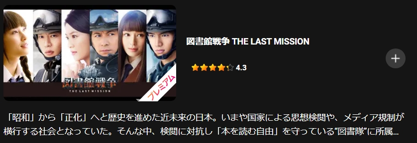 - 映画「図書館戦争 THE LAST MISSION」がフルで視聴可能。