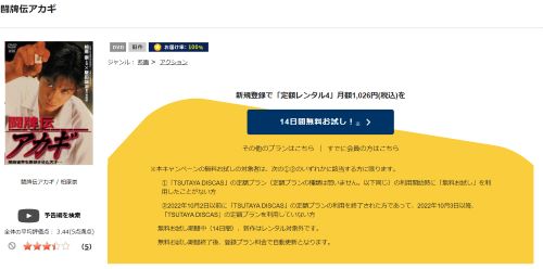 そして、映画「闘牌伝アカギ」はツタヤディスカスで配信しているので、無料でDVDレンタルが可能です。