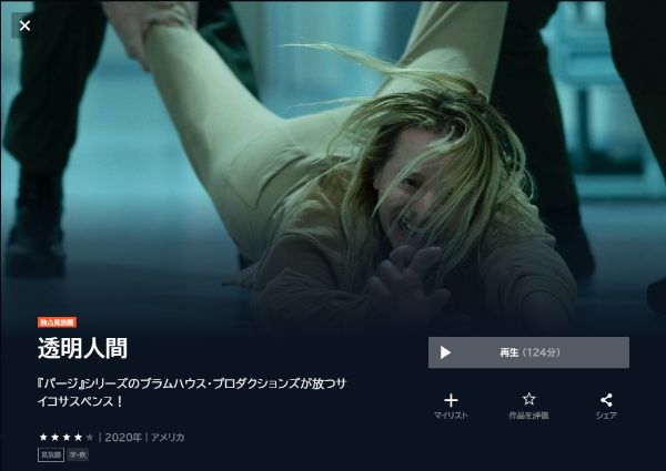 U-NEXTで映画「透明人間(2020)」の動画を無料トライアルでフル視聴