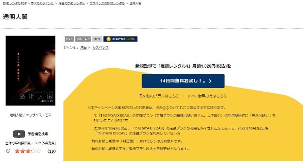 そして、映画「透明人間(2020)」はツタヤディスカスで配信しているので、無料でDVDレンタルが可能です。