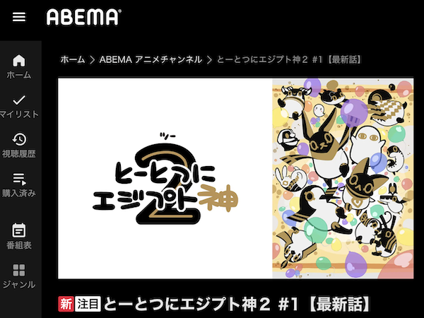 また、ABEMAは独自のオリジナル動画やコンテンツがあり、アニメ「とーとつにエジプト神2」以外も視聴できます。