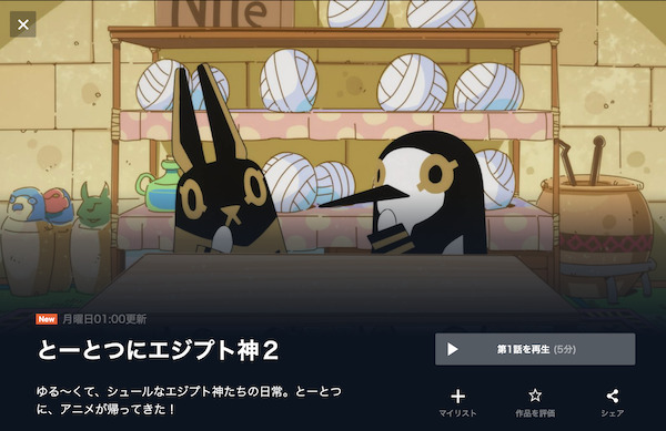 Netflixでアニメ「とーとつにエジプト神2」の動画の配信予定
