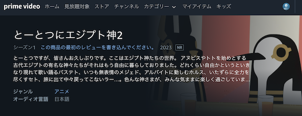 人気の動画配信サイトAmazonプライムでも、アニメ「とーとつにエジプト神2」を視聴できるか調査しました。