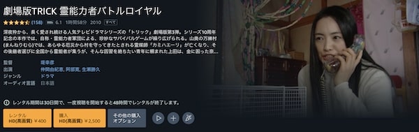 そこで、music.jpで映画「劇場版TRICK 霊能力者バトルロイヤル」をレンタル配信してるか調査しました。