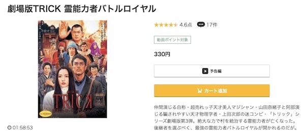 映画「劇場版TRICK 霊能力者バトルロイヤル」は330円でレンタル配信してるので、フルで視聴できます。