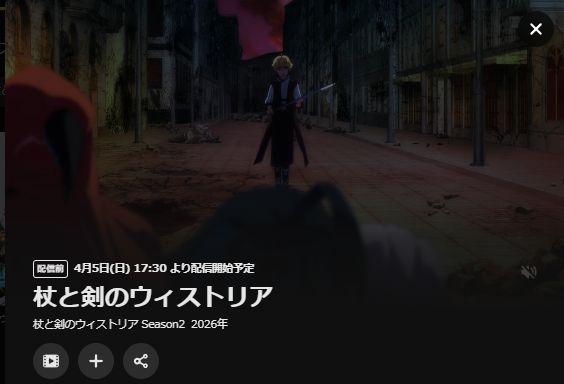 DMM TVではアニメ「杖と剣のウィストリア 2期」の動画を見放題で配信予定です。