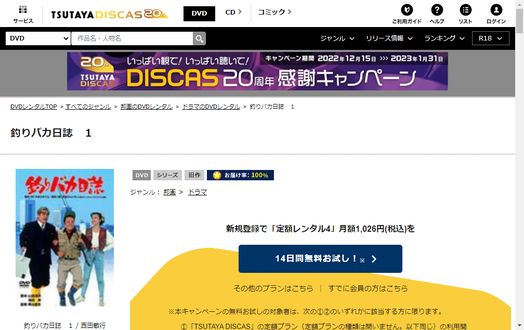 TSUTAYA DISCASで映画「釣りバカ日誌1」をDVDレンタルで無料視聴