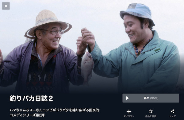また、「釣りバカ日誌2」の映画の関連作品も見放題でフル視聴できます。